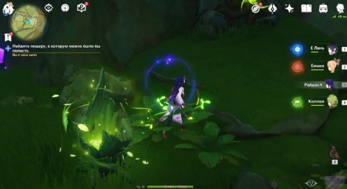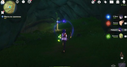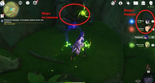 Спустившись, вы заметите справа заблокированный проход. Подойдите к зеленой ветви впереди и возьмите дендрогранумы. Затем ударьте заряженной атакой или выстрелом по булыжнику с зеленой сферой в центре, чтобы разрушить его и забрать мору. Пройдите немного дальше и стукните точно так же по другому камню с зеленой сферой. Пройдите в открывшееся отверстие.