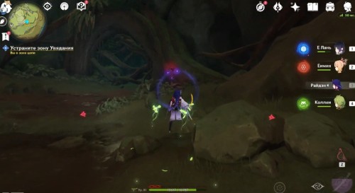 Разрушив последнюю веточку, будьте готовы к сражению с дополнительными врагами. Уничтожив всех мобов, взаимодействуйте с опухолью Увядания, чтобы очистить всю область. Теперь можете открыть богатый сундук и изучить светящийся маркер для получения фрагмента механизма Амити III.