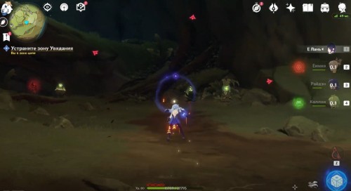 Спуститесь вниз, двигаясь по тропинке. Дойдя до очередного маркера, посмотрите небольшой ролик. Далее вам необходимо будет очистить область разложения, уничтожив 3 ветви с помощью дендрогранумов и заряженных атак. Расположение красных бутонов показано на скриншотах ниже.