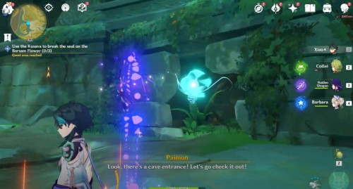 Поболтайте с новым сказочным существом, который расскажет вам о важности нахождения цветка барсам. Далее войдите в пещеру и дойдите до тупика с камнем и лианами. Изучите инструкцию по расширенному использованию кусавы. Экипируйте его, если он не надет на вашем персонаже, а затем используйте гаджет (клавиша «Z»), наведите прицел на камень и выстрелите (ЛКМ).