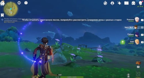 После кат-сцены вам нужно будет найти скрытую мелодию. Для этого просто изучите странные символы, нарисованные на земле неподалеку. Далее подбегите к сумерским розам впереди и осмотрите их со всех сторон, пока не появится новый квестовый маркер.
