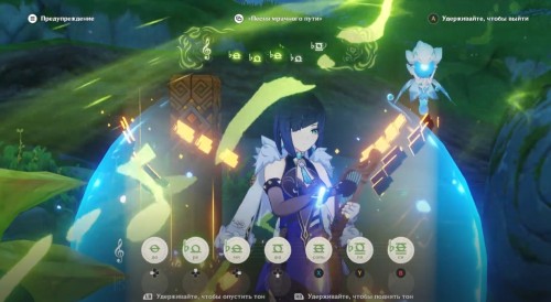 Последовательность нот будет такая же, как в прошлый раз: Ми, Ре, Ми, Ре и Ля. После игры на лире просто войдите в зеленый портал, чтобы оказаться в другой локации, где расположена область Увядания.
