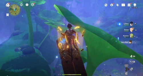 Он находится на вершине гигантского листа. Подняться на него можно с помощью пружинистого гриба, который необходимо активировать Электро атакой. Вы также можете взобраться на ближайший выступ, а затем создать какую-нибудь Гео конструкцию и перелезть с нее на листок.