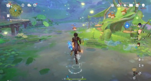 Двигайтесь по тропинке на северо-запад, и вскоре вы заметите Араканта. Поболтайте с ним. Он даст вам задание, связанное со сбором Дендро частиц. Мы подробно рассказали об этом в отдельном материале.