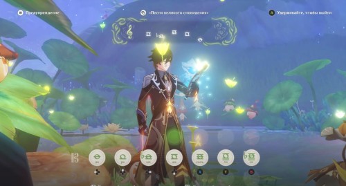 Пообщавшись со всеми существами на празднестве, отыщите Аракави и побеседуйте с ним. Далее вам нужно будет сыграть мелодию на сцене. Для этого встаньте в указанной точке и возьмите Старинную лиру (клавиша «Z»). Необходимо исполнить Песню великого сновидения: Фа, Ми, Соль, Фа и До (ноты на первом ряду).