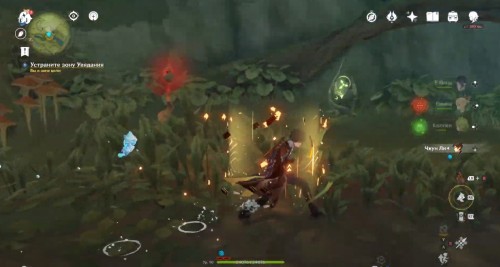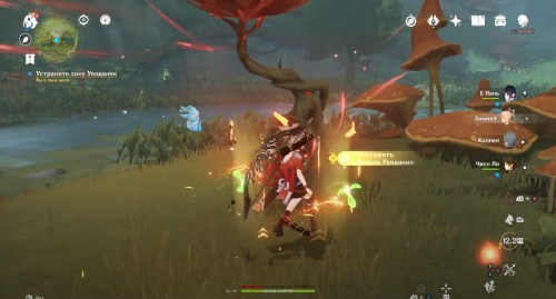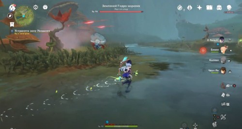 Дендрогранумы находятся справа от одной из ветвей. Уничтожив красные бутоны, разберитесь с мини-боссом в лице земляного Гидро моровика. Затем подойдите к красному цветку и разрушьте опухоль Увядания.
