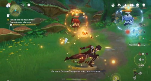 Далее вам необходимо будет разобраться сразу с 3-мя магами Бездны: Гибика, Гундомар и Гундахар, относящимися к Гидро, Электро и Пиро стихиям. Советуем использовать против них Крио атаки. После победы над ними появятся еще 3 мага тех же стихий, а потом еще 3. Битва может сильно затянуться, поэтому рекомендуем иметь в команде хорошего целителя или щитовика.