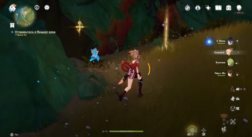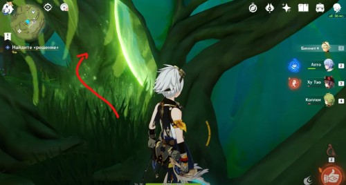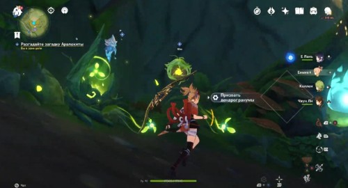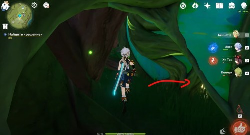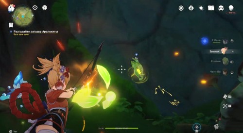 Для уничтожения щитов этих противников используйте Электро, Гидро или Гео атаки. Разобравшись с монстрами, пообщайтесь с Арариканом. После этого пройдите в пещеру.