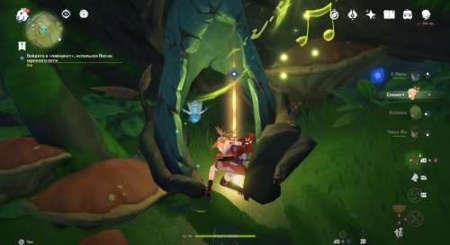 Итак, рядом с каждой из рун на стенах возникнут Дендро мишени. Вам нужно будет подобрать дендрогранумы (возле пружинистого гриба) и выстрелить в эти эмблемы заряженными стрелами в правильной последовательности. Нужный порядок выглядит следующим образом: