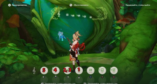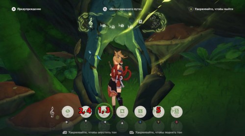 Пройдите в портал и подойдите к сфере, покрытой лианами. Вам нужно сыграть перед ней Песню вамадхи, нажав на ноты на первой строчке: Фа, Ми, Ми, Ре и До. Далее ударьте вамадху два раза, чтобы она повернулась, и вы смогли пройти внутрь.