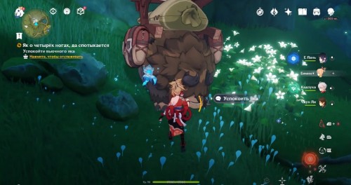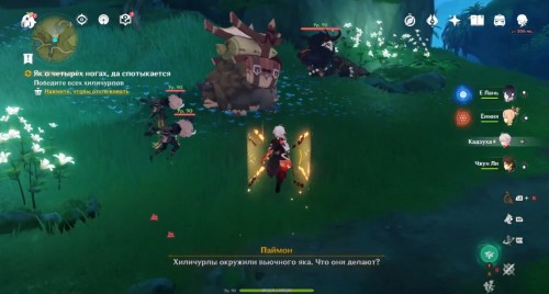 Вы практически сразу же увидите яка вдалеке. Рядом с ним окажутся хиличурлы и митачурл. Разберитесь с противниками, а потом успокойте зверя. Посмотрите небольшой ролик, в котором вы возвратитесь к Элберу.