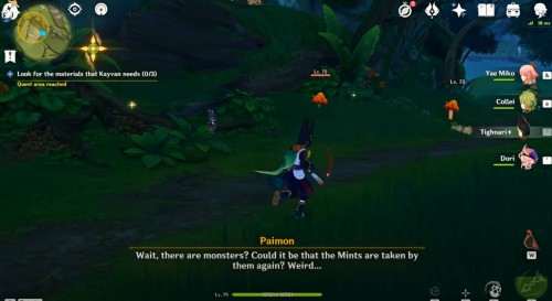 Опять же обычные плоды Кайвану не подойдут, поэтому придется искать специальные фрукты. Для этого переместитесь к статуе Дендро архонта в районе горы Девантаки, а потом пройдите немного на запад к квестовому маркеру. Здесь вам предстоит разобраться с группой плесенников и грибов, чтобы заполучить специальные фрукты харра.