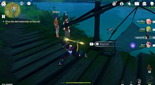 В отмеченной области вы обнаружите несколько агрессивных грибов. Разберитесь с ними, чтобы получить 3 свежие мяты. Далее возвратитесь к Кайвану и Хельбет, которые сменят свое местоположение – вы найдете их за городом возле точки для рыбалки. Передайте рыбаку пшеницу, закатник и особый ингредиент.