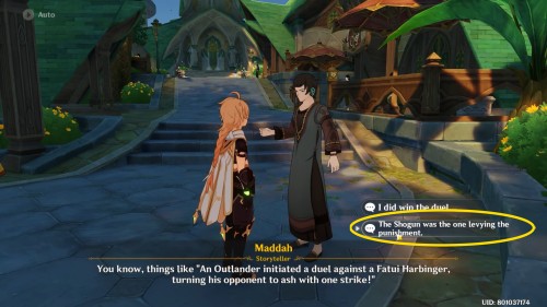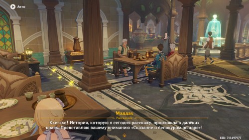 Телепортируйтесь в город Сумеру и поднимитесь по лестнице до кафе «Пуспа», рядом с которым и находится рассказчик. Маддах пожалуется, что в последнее время у него стало совсем мало слушателей, и попросит вас поделиться деталями одного из своих путешествий.
