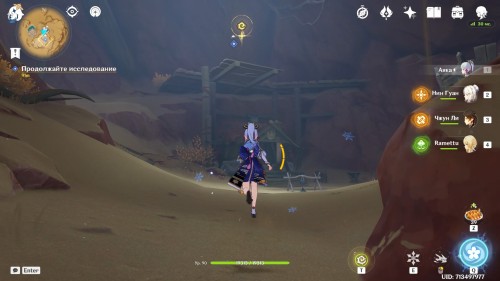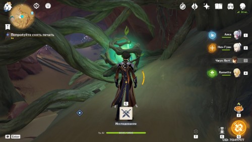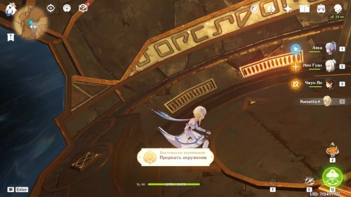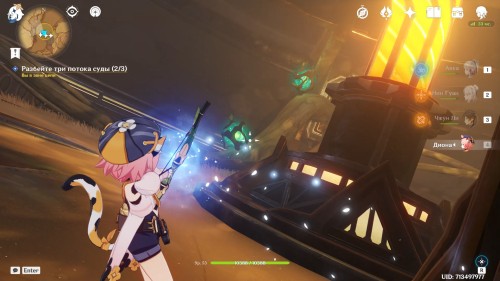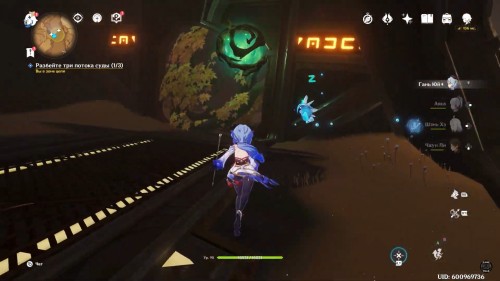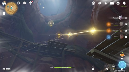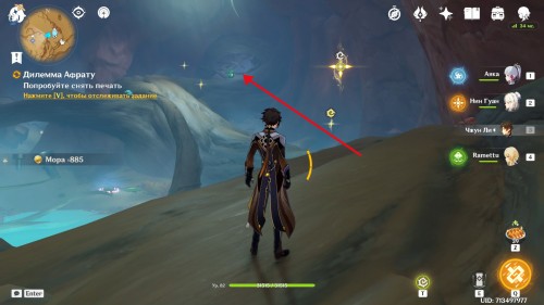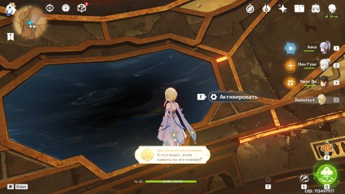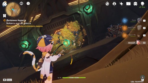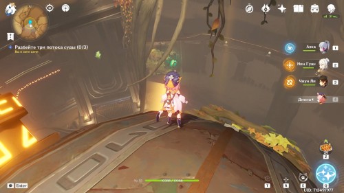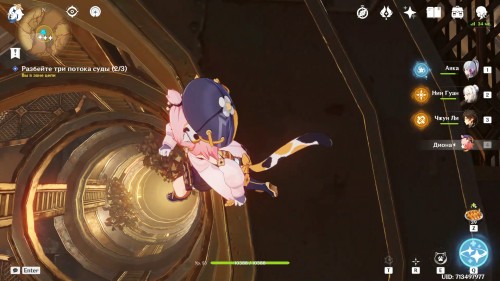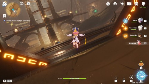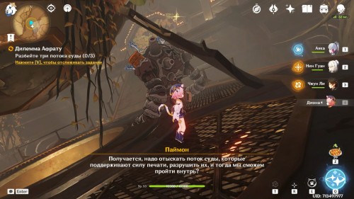 Когда вы окажетесь внутри, Паймон предположит, что вам нужно попасть в кабину управления наверху. Туда можно легко добраться при помощи четырехлистного символа.