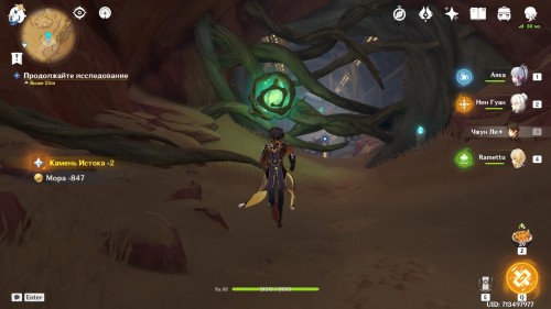 Когда вы пройдете некоторое расстояние, Паймон сама вам укажет на каменную глыбу, заваливающую проход. При помощи лазера робота ее можно разбить. Подойдите к камню, дождитесь, когда голем выпустит в вас заряд, и отбегите в сторону.