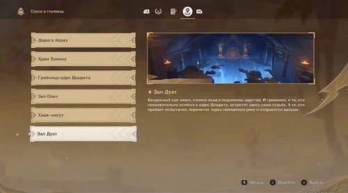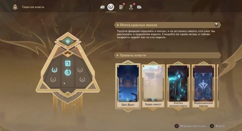 После разговора изучите новую инструкцию по использованию Плиты красных песков. Затем войдите в инвентарь, найдите требуемый инструмент и просмотрите его. Вы увидите открытие нового символа и узнаете, что разблокировалась дополнительная область – зал Дуат. Укажите эту локацию в списке и нажмите на надпись «Перейти», дабы на карте возникла соответствующая метка.