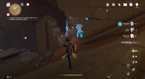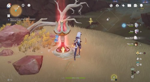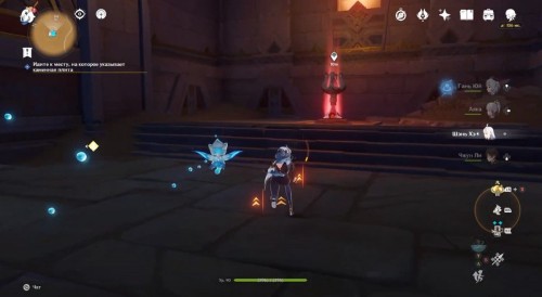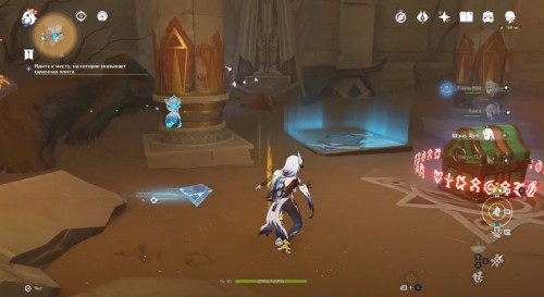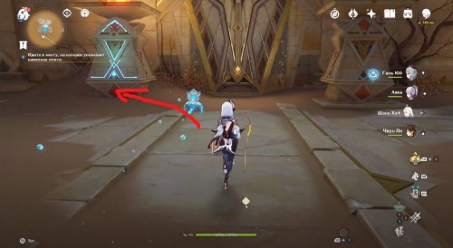 Выполнив указанные условия, переместитесь к статуе семи архонтов, расположенной к востоку от деревни Аару. Вы можете также просто пройтись рядом с окрестностями деревушки, если уже находитесь неподалеку. Практически сразу же стартует сюжетная сценка, которая даст начало необходимому вам заданию.