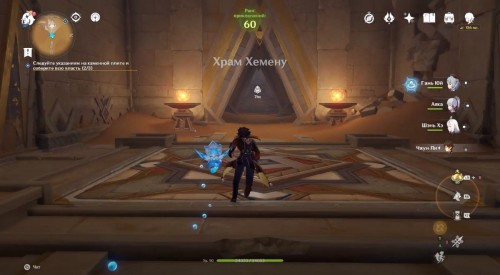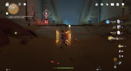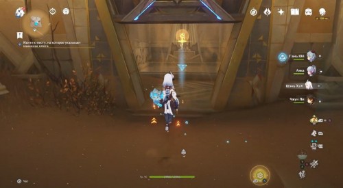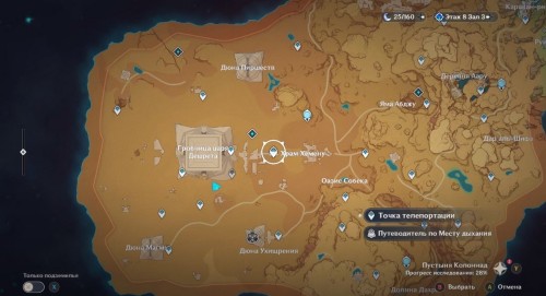 Вновь примените Плиту красных песков, выберите Место дыхания из списка и кликните на кнопку «Перейти». Необходимая вам локация расположена возле храма Хемену. Переместитесь туда и бегите в проход вперед, двигаясь за маркером.