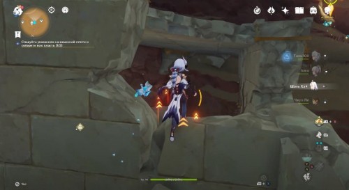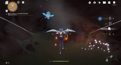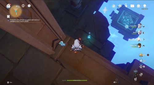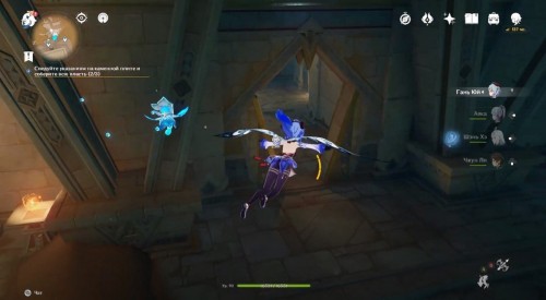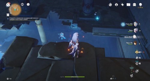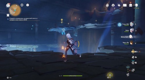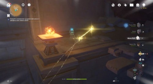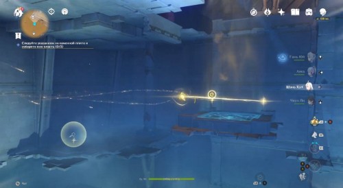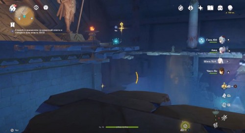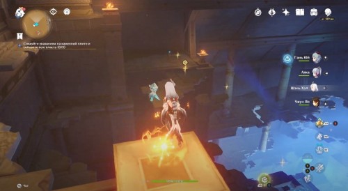 Затем подойдите ко входу в устройство, и вы автоматически переместитесь наверх. После короткой беседы с Паймон вы откроете достижение «Прямой курс». Вам необходимо будет активировать 3 факела, доведя до них такое же число искр, находящихся неподалеку.