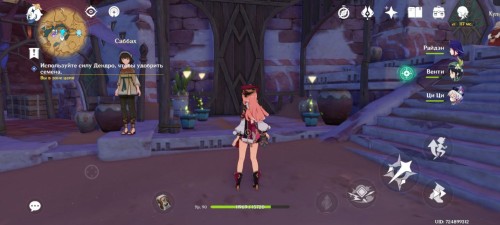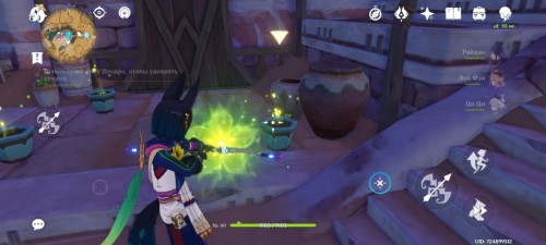 Рядом с девушкой, над горшками, появятся три квестовых маркера. Возьмите в группу Дендро персонажа и используйте его элементальный навык (лучники могут использовать и заряженные атаки), чтобы удобрить цветы.