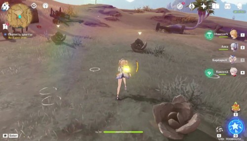 Вам предстоит, как и в предыдущем задании этой цепочки, взять в отряд персонажа, владеющего силой Гидро, и использовать его элементальную силу на трех каменных цветах.