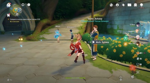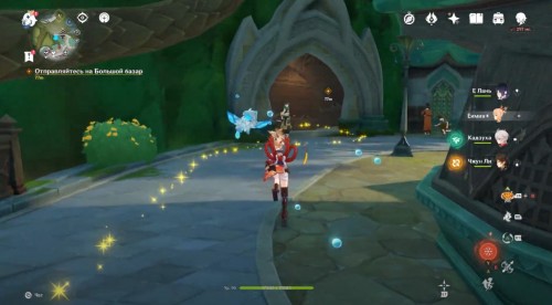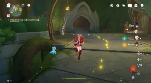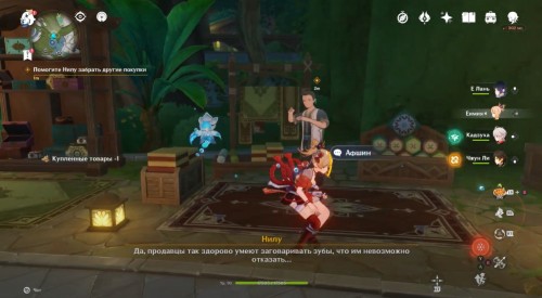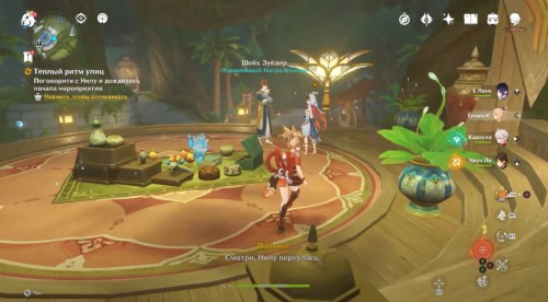 Переместитесь в столицу Сумеру, а затем отправляйтесь на рынок, вход в который находится возле кузнеца. Рядом с театром пообщайтесь с Нилу. Она попросит у вас помощи в подготовке к празднеству.