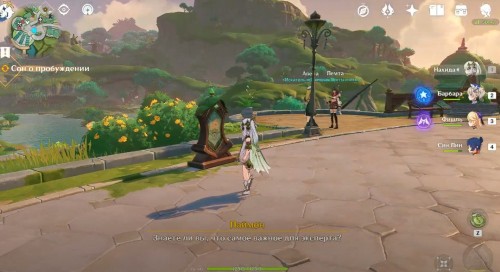 Первым делом вам необходимо будет отправиться на Мгновение сновидений. Встреча происходит в верхней части города, до которой можно добраться, пройдя по каменным дорожкам. Добравшись до нужной площадки, посмотрите продолжительный ролик, в котором будет показано прибытие Нахиды.