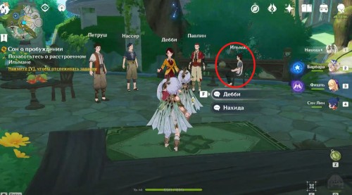 Первым делом вам нужно разузнать о людях из снов вместе с Петрушем. Для этого подойдите к лежащей в уголке Дебби. Начнется новая кат-сцена, в которой Нахида предложит войти в сон девушки, чтобы узнать, что именно здесь происходит.