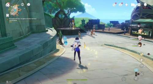 Разобравшись с врагами, покиньте арену и посмотрите длительную кат-сцену с участием Яэ Мико и Лайлы. Внезапно вы услышите чьи-то крики о помощи неподалеку. Воспользуйтесь четырехлистным символом, чтобы быстро добраться до нужной локации.