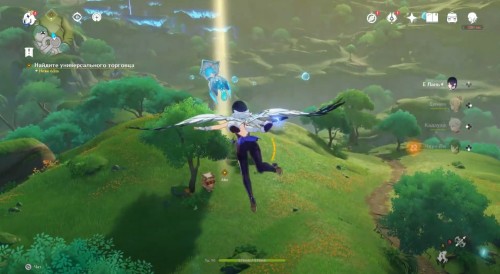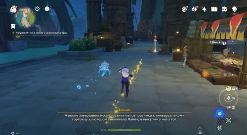 Гляньте еще одну кат-сцену. Теперь вам необходимо отыскать универсального торговца. Он будет отмечен на карте – вы отыщите его к востоку от города Сумеру. Переместитесь к восточному телепорту, а затем спрыгните вниз с края ограды. Летите в сторону холма, на котором стоит як. Здесь вы встретите Дори – поболтайте с ней.