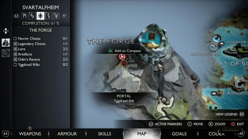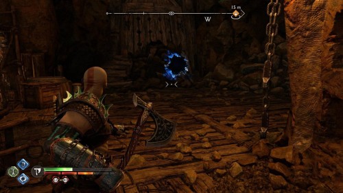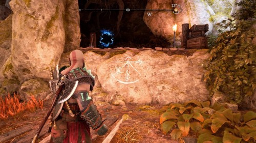 Найдя артефакт, поверните вправо, и вы увидите точку для копья. Воспользуйтесь ею, чтобы перебраться в другую область. Посмотрите налево, и вы заметите разлом Иггдрасиля, в котором скрывается ящер.