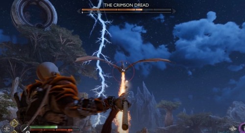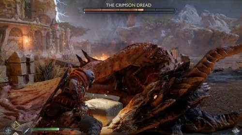 В течение схватки Багровый ужас несколько раз поднимется в небо и начнет изрыгать пламя, пролетая над Кратосом. Чтобы он прекратил свою воздушную атаку, вам нужно будет сбить его с помощью копья – киньте его прямо в голову монстра, чтобы тот упал, и вы смогли безнаказанно бить его 5-10 секунд. Советуем вам в этот момент использовать все свои способности, чтобы нанести дракону максимум повреждений.
