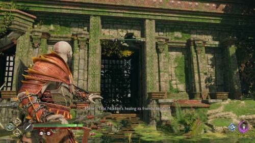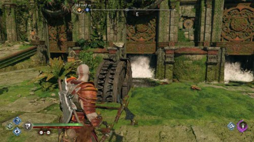 Сожгите лозы, а затем разберитесь с Сейдром и Ноккеном. Взаимодействуйте с большим колесом-рукояткой для поднятия ворот – в результате вода снова заполнит реку.