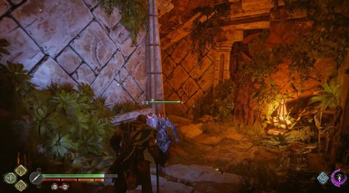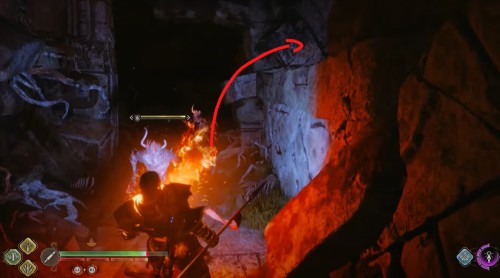 В туннеле произойдет обвал, и вы сможете теперь спокойно взобраться по стене справа. Выбравшись на открытую местность, вы обнаружите сундук с рунами впереди. Здесь на вас может напасть босс Неукротимая ярость. Впрочем, после нескольких ударов он исчезнет. Теперь просто заберитесь на стену, чтобы начать битву с драконом.
