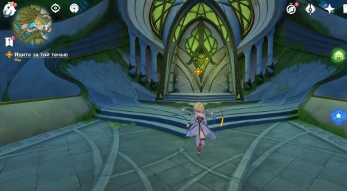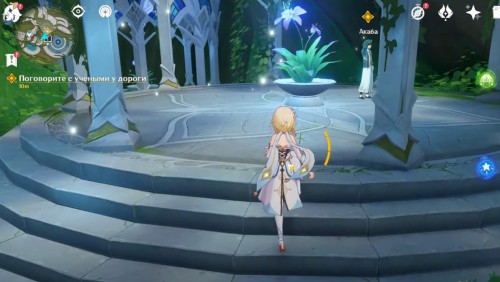 После беседы с исследователями, вы заметите силуэт Сказителя – начните следовать за ним, двигаясь к квестовому маркеру наверх. Войдите внутрь храма и пообщайтесь с Нахидой, стоящей в центре. Вы узнаете, что Дендро Архонт заключила сделку со Скарамуччей.