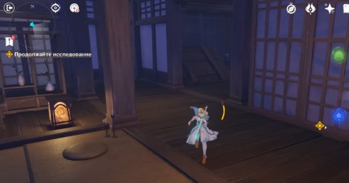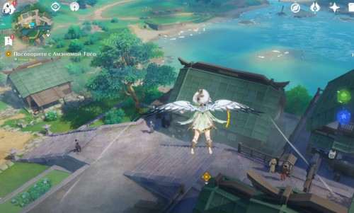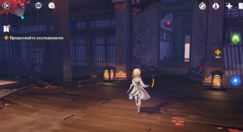 Чтобы выяснить, что произошло, вы решаете отправиться в город Инадзума. Переместитесь к северному телепорту, а затем спланируйте вниз к кузнице. Там пообщайтесь с нужным персонажем. Он поведает вам измененную версию истории о «Райдэн гокадэн»