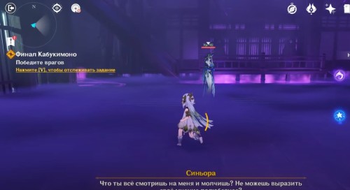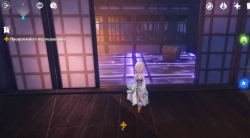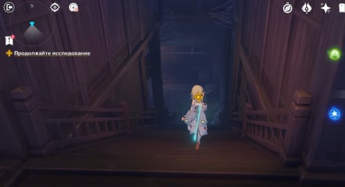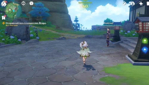 После общения с кузнецом, переместитесь в поместье Камисато на востоке острова Наруками. Как только вы подойдете к входу, начнется новый ролик, в рамках него вы войдете внутрь и пообщаетесь с Фурутой, которая начнет нахваливать главного героя.