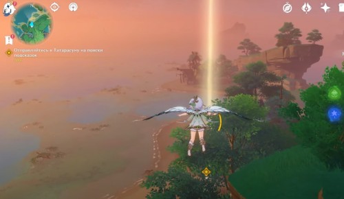 Не получив нужной информации, Путешественник решает отправиться в Татарасуну. Телепортируйтесь к северной точке быстрого перемещения, а затем спрыгните с обрыва и летите на север к пляжу. Там вы обнаружите изобретателя Ксавье – поболтайте с ним.
