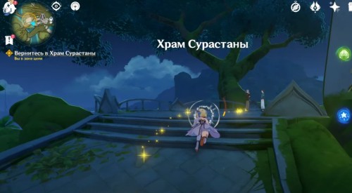Бывший Предвестник не будет помнить Путешественника, назвавшись при этом Странником. После короткого разговора возвратитесь к фруктовой лавке на рынке и поговорите с торговцем. Теперь можете вернуться в храм Сурастаны.