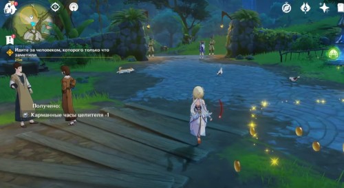 Отправляйтесь в указанную область, чтобы получить новые сведения о своем близнеце. Для этого телепортируйтесь в город Сумеру. Сразу же после перемещения начнется кат-сцена с диалогом двух исследователей – они будут обсуждать события, случившиеся 4 века назад на территории Татарасуны. Поговорите с учеными.