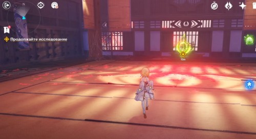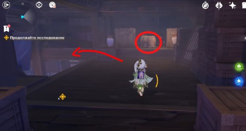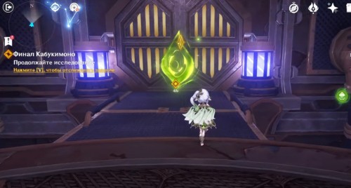 Вы возвратитесь в начало подземелья. Нужно продолжить исследование. Пройдите через открывшиеся двери и войдите на арену. Подойдите к Дендро символу, чтобы попасть в новую область.
