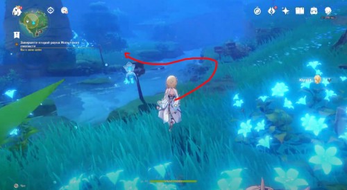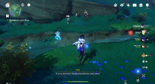 После обнаружения нужной вещицы поговорите с Итто, который смог поймать детишек в масках. Затем посмотрите красочный ролик. Далее отправляйтесь на побережье, где находится игра Акицу Югэй. Возле таблички вы обнаружите загадочную женщину, с которой столкнулись в предыдущем квесте.