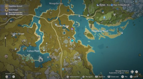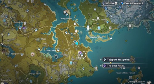 На этот раз девушка пошлет вас в руины, находящиеся прямо рядом с озером Лухуа. Нужное место будет отмечено фиолетовым указателем. Переместитесь к ближайшему телепорту, а затем двигайтесь на северо-восток. Там вы обнаружите небольшую каменную площадку с плющом, а также Пиро слаймов и одного Пиро мага Бездны.