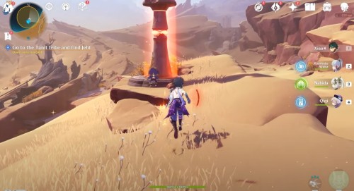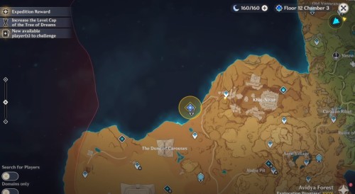 Телепортируйтесь к точке быстрого перемещения, находящейся к северо-востоку от Дюны Пиршеств, а затем начните двигаться на север к неактивированной Статуе семи Архонтов и квестовому маркеру. Затем разблокируйте статую, чтобы открыть карту новой области и получить трофей «Континентальный исследователь: Жгучие сны пустыни II».