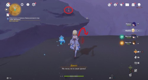 Для этого необходимо спрыгнуть в гигантскую расщелину и встать под утесом, на котором расположен телепорт (советуем вам активировать его, чтобы вы потом смогли при необходимости быстренько вернуться сюда). Встаньте в указанном месте для начала короткой кат-сцены.