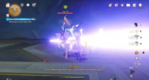 Используйте четырехлистные символы для быстрого спуска на огромную платформу внизу. Там активируйте устройство в виде лампы. Далее вам нужно будет разобраться с четырьмя первозданными конструкциями (нападут на вас в две волны).