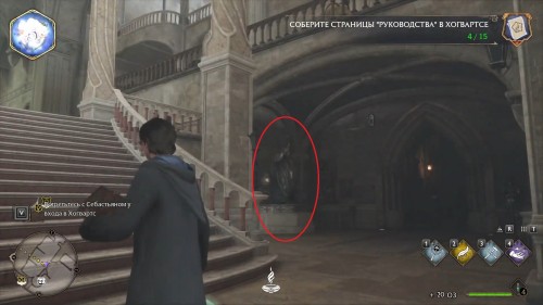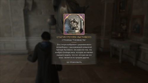 Заклинание «Ревелио» позволит вам узнать побольше о человеке, послужившим прототипом для каменного изваяния в углу. Хотя это и не относится напрямую к текущей миссии, но любознательность свойственна всем ученикам Хогвартса и часто помогает, в том числе и в решении различных головоломок.
