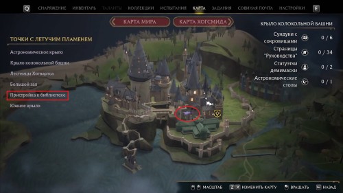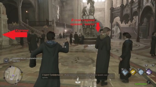 Первая зацепка у вас уже есть: попробуйте использовать «Люмос» на раму, и темнота отступит, проявив изображение некой локации. Статуя в углу уже может быть вам знакома, но, если даже вы видите это место впервые, отыскать его не составит большого труда.