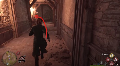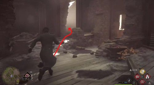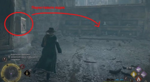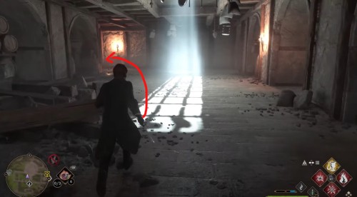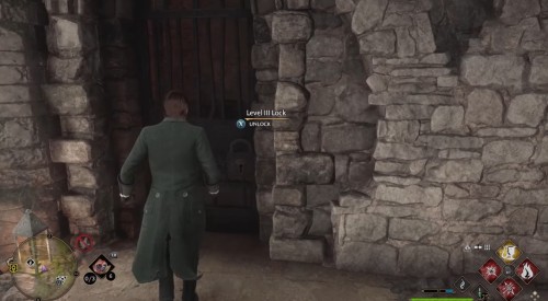 Войдите в здание через парадный вход, сверните влево, зайдите за угол и спуститесь по лестнице в подвал. Сверните вправо и откройте дверь, закрытую на замок 3-го уровня, с помощью заклинания Алохомора III (придется отыскать немало статуэток демимаски).